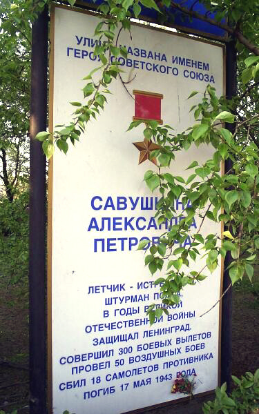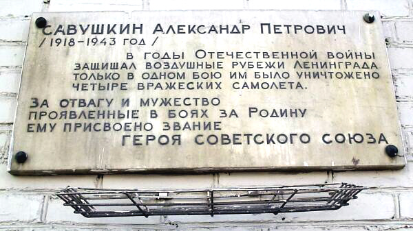 Штурман 11-го гвардейского истребительного авиационного полка (7-й истребительный авиационный корпус, Войска ПВО страны) гвардии капитан Александр Савушкин, защищая от налётов гитлеровской авиации Ленинград (с 1991 года и ныне – Санкт-Петербург), и поддерживая с воздуха воинов, защищавших «северную столицу», совершил триста семьдесят три боевых вылета на самолётах-истребителях «ЛаГГ-3» и P-39 «Аэрокобра».