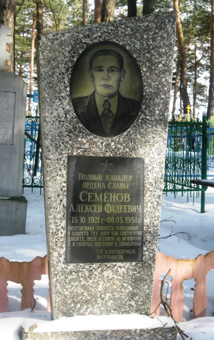 Семёнов Алексей (в наградных документах – Александр) Фадеевич – командир отделения 590-го отдельного сапёрного батальона 289-й стрелковой дивизии (32-я Армия, Карельский фронт), ефрейтор – на момент представления к награждению орденом Славы 1-й степени.