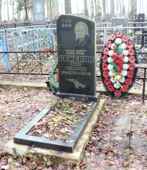 Семёнов Павел Фёдорович - командир отделения 40-го отдельного сапёрного батальона (46-я стрелковая Лужская ордена Суворова 2-й степени дивизия, 2-я ударная армия, 2-й Белорусский фронт), старшина - на момент представления к награждению орденом Славы 1-й степени.