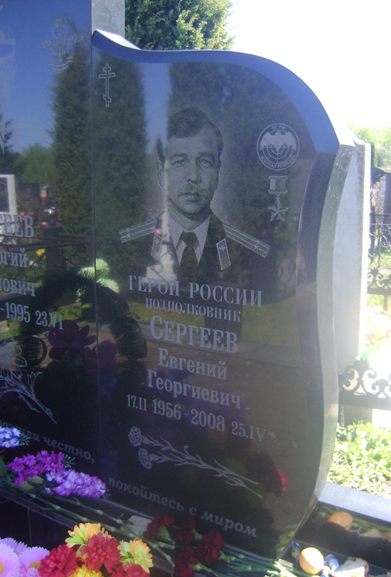 Летом 2012 года на торжественной церемонии в Культурном центре Вооружённых Сил РФ руководитель Главного разведывательного управления Генерального штаба Вооружённых Сил РФ генерал-майор И.Д.Сергун от имени Президента РФ передал знак особого отличия Героя Российской Федерации – медаль «Золотая Звезда» вдове Е.Г.Сергеев ‒ Наталье Владимировне Сергеевой.