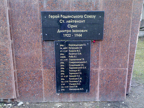 Сирик Дмитрий Иванович – командир роты 1-й гвардейской танковой ордена Ленина бригады 8-го гвардейского механизированного корпуса 1-й танковой армии 1-го Украинского фронта, гвардии старший лейтенант.