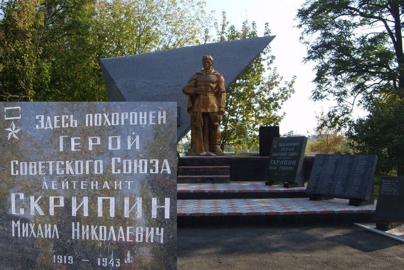 24 ноября 1943 года лейтенант М.Н.Скрипин погиб в бою в районе села Русская Поляна Черкасского района Черкасской области, под огнем противника устанавливая минное поле.