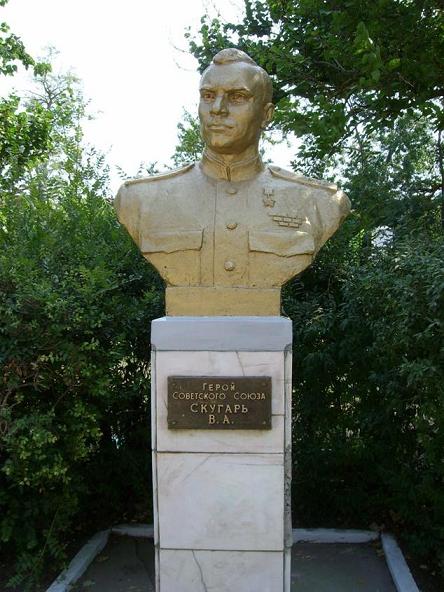 Так, 9 октября 1941 года при выполнении боевого задания в районе Каховки (Херсонская область) В.А.Скугарь лично сбил вражеский бомбардировщик Ю-88.