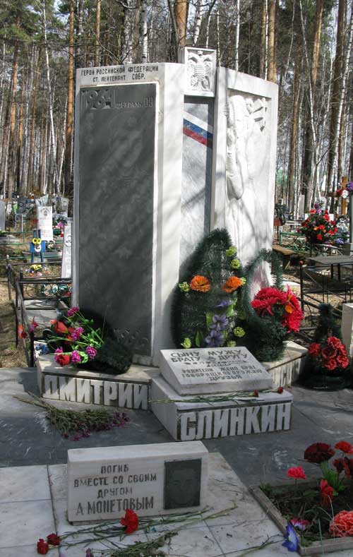 Раненого Дмитрия Слинкина удалось в ходе боя эвакуировать из горящего дома, доставить в военный госпиталь, но от полученных ран там он скончался...