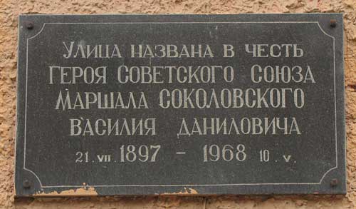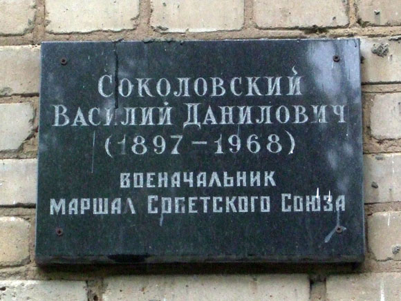 В Великую Отечественную войну генерал Соколовский В.Д. - начальник штаба Западного фронта (21.07.1941-25.01.1942 и 5.05.1942-28.02.1943); начальник штаба Западного направления (30.07.1941-10.09.1941 и 1.02.1942-5.05.1942); командующий войсками Западного фронта (28.02.1943-15.04.1944); начальник штаба 1-го Украинского фронта (15.04.1944-9.04.1945); заместитель командующего 1-м Белорусским фронтом (9.04.1945-10.06.1945).