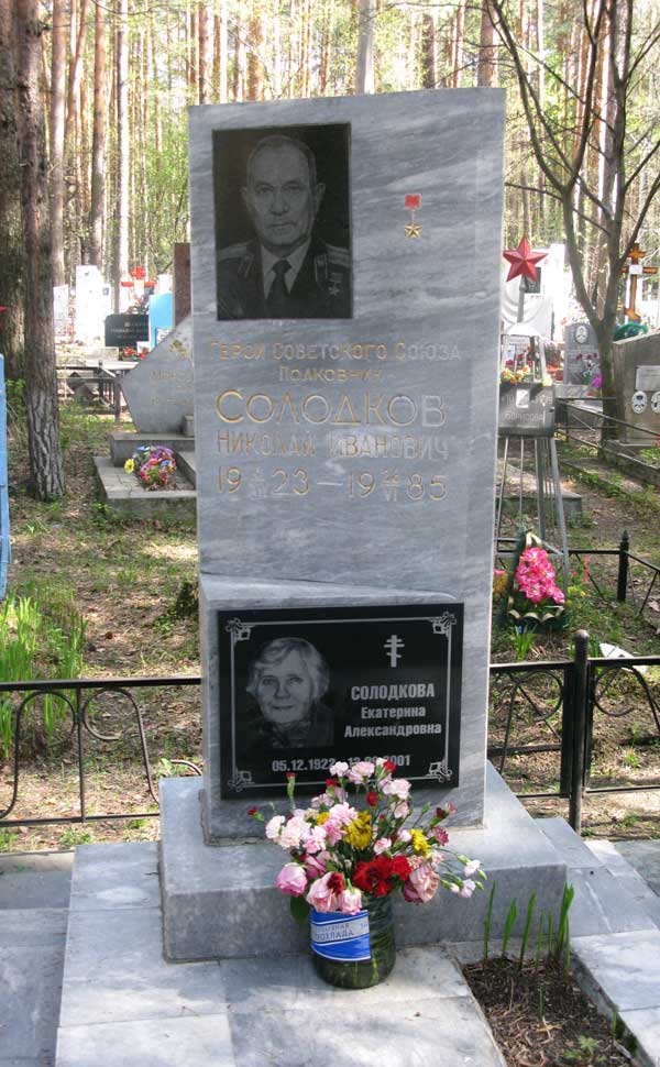 С сентября 1982 года полковник внутренней службы Н.И. Солодков – в запасе. Жил в городе Свердловск, ныне Екатеринбург. Умер 28 июня 1985 года. Похоронен на Широкореченском кладбище в Екатеринбурге.