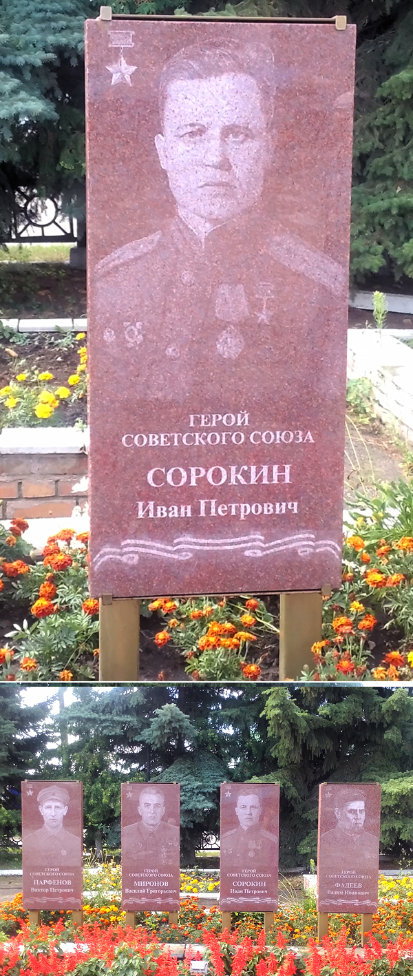 В селе Елшанка установлена мемориальная доска И.П.Сорокину, там же его именем названа улица.На Аллее Героев на площади имени 40-летия Победы в поселке Тереньга установлен стела с его портретом.