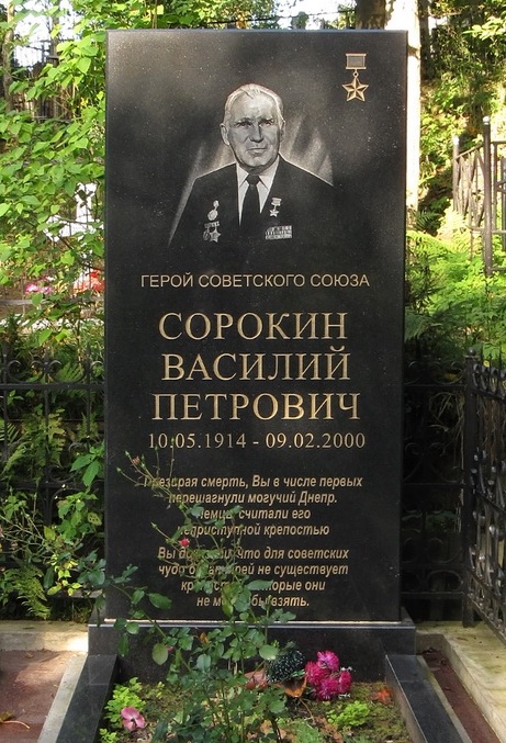 Тов. Сорокин Василий Петрович во время форсирования реки Днепр проявил подлинный героизм. Под сильным ружейно-пулеметным огнем противника при быстром течении реки переправил на западный берег Днепра в районе населенного пункта Змеи 77 бойцов и командиров 467 стрелкового полка, а также продукты и боеприпасы. Тов. Сорокин сделал 12 рейсов через Днепр. С западного берега Днепра он перевез 23 раненых бойцов и командиров.