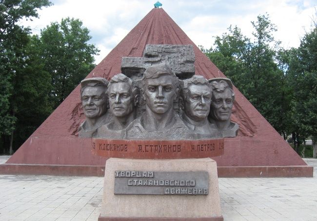 Памятник творцам стахановского движения установлен в 2010 году в городе Ирмино Стахановского городского совета Луганской области (Украина). Авторы — группа луганских скульпторов: Николай Можаев, Александр Редькин, Виктор Закалюкин, Вячеслав Шаповалов и Роман Мануйлов. Фото Олега и Елены Кныш, 2013.