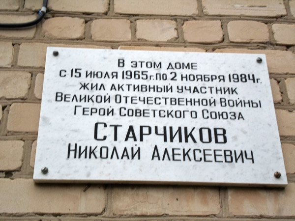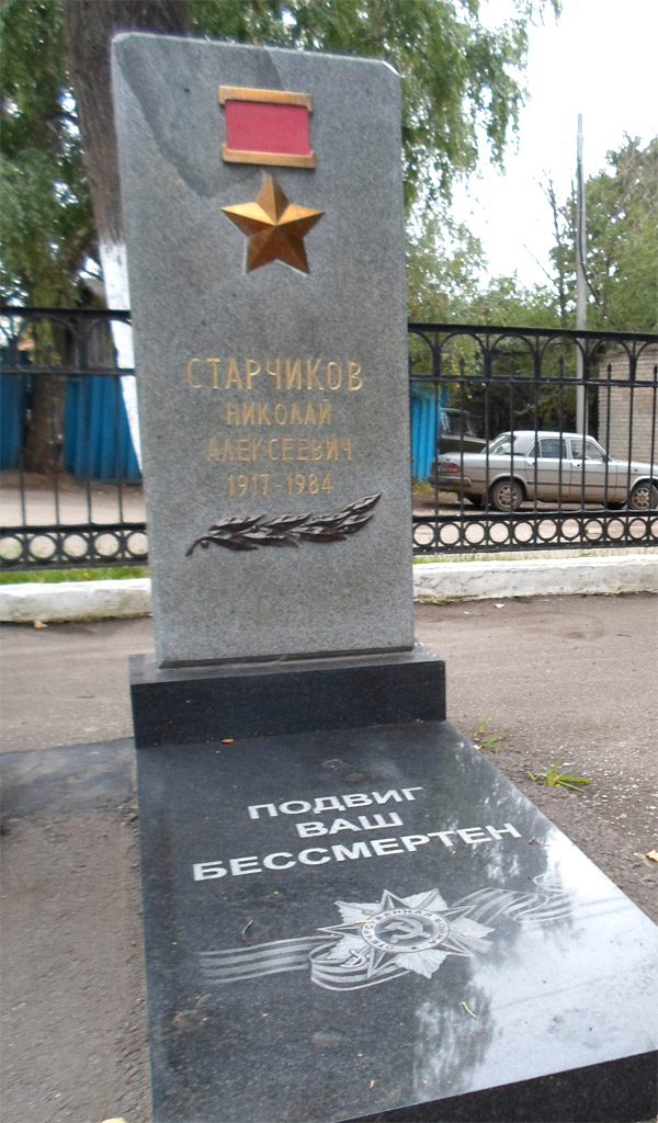 Старчиков Николай Алексеевич - командир эскадрильи 16-го гвардейского истребительного Сандомирского ордена Александра Невского авиационного полка 9-й гвардейской истребительной Мариупольско-Берлинской ордена Ленина Краснознаменной ордена Богдана Хмельницкого авиационной дивизии 8-й воздушной армии 1-го Украинского фронта, гвардии капитан.