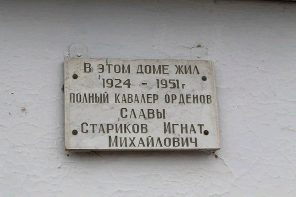 Стариков Игнат Михайлович - разведчик дивизионного разведывательного взвода 14-й гвардейской кавалерийской дивизии 7-го гвардейского кавалерийского корпуса 1-го Белорусского фронта, гвардии ефрейтор - на момент представления к награждению орденом Славы 1-й степени.