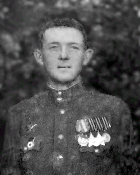 В сентябре 1944 года, в боях на левом берегу реки Висла, вовремя разведки первым ворвался в блиндаж, огнем из автомата уничтожил трех гитлеровцев. Способствовал захвату пленного. Награжден орденом Красного Знамени.
