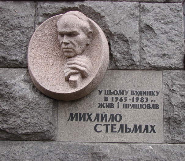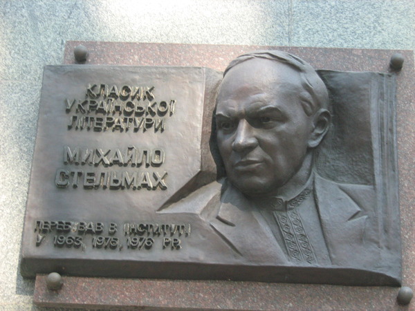 Установлена в Киеве (Украина) на доме (улица Богдана Хмельницкого, 68), в котором в 1965-1983 годах жил М.А.Стельмах. Фото Игоря Сердюкова, 9.03.2009.