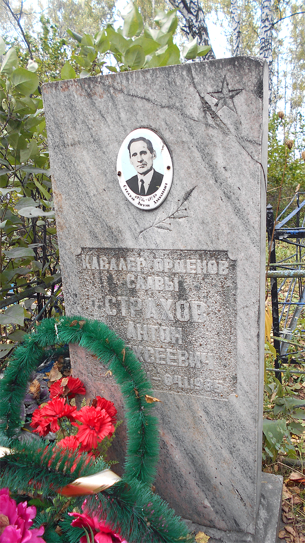 Страхов Антон Алексеевич – командир взвода связи 172-го стрелкового полка (57-я гвардейская стрелковая дивизия, 4-й гвардейский стрелковый корпус, 8-я гвардейская армия, 1-й Белорусский фронт), гвардии старшина – на момент представления к награждению орденом Славы 1-й степени.