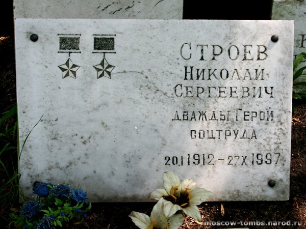 Бронзовый бюст Н.С.Строева установлен в Москве, а в Жуковском на территории Лётно-исследовательского института – памятная доска.
