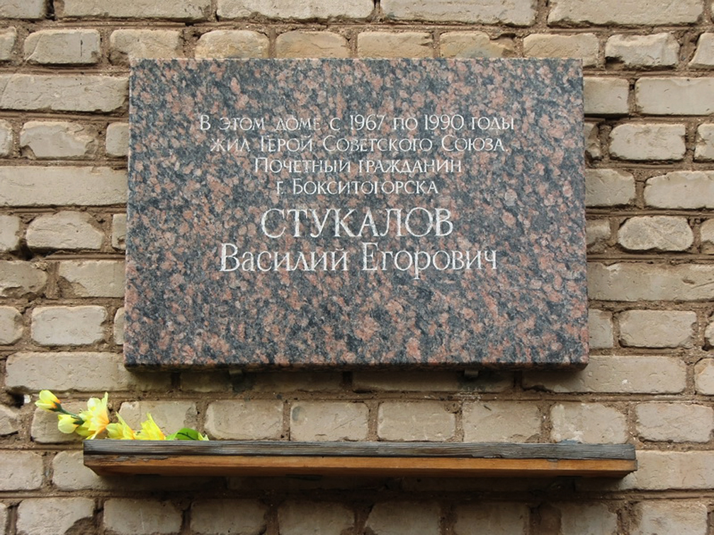 В Бокситогорске на доме, в котором он жил, установлена мемориальная доска.