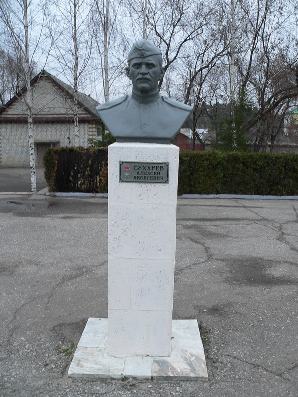 После войны старшина А.Я.Сухарев демобилизован. Жил в городе Никольск, работал инструктором в районном комитете КПСС.