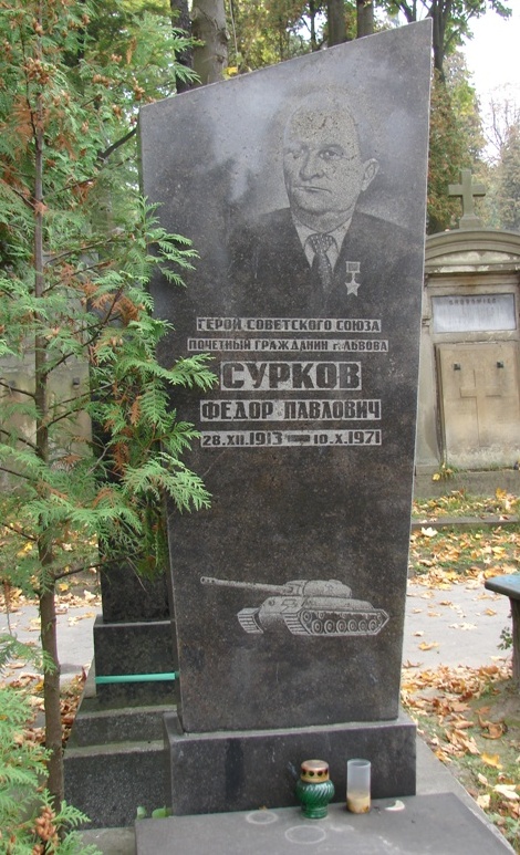 Сурков Фёдор Павлович - механик-водитель танка Т-34 63-й гвардейской Челябинской танковой бригады 10-го гвардейского Уральского добровольческого танкового корпуса 4-й танковой армии 1-го Украинского фронта, гвардии старшина.