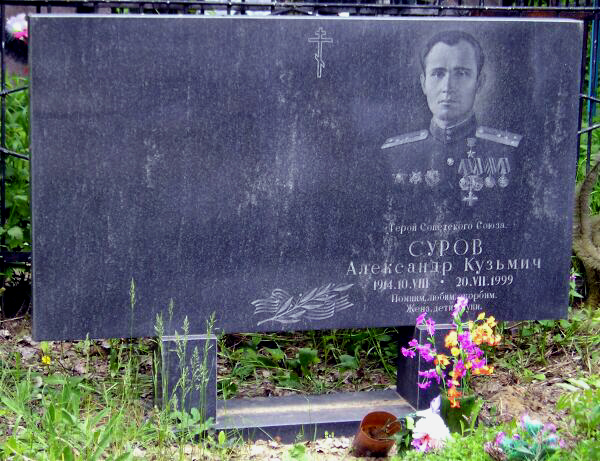 Указом Президиума Верховного Совета СССР от 10 апреля 1945 года за образцовое выполнение боевых заданий командования на фронте борьбы с немецко-фашистскими захватчиками и проявленные при этом мужество и героизм гвардии старшему лейтенанту Сурову Александру Кузьмичу присвоено звание Героя Советского Союза с вручением ордена Ленина и медали «Золотая Звезда» (№ 4802).