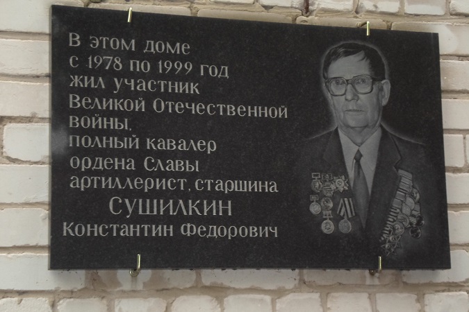 Сушилкин Константин Фёдорович – командир 45-мм орудия артиллерийской батареи 88-го гвардейского стрелкового полка (33-я гвардейская Севастопольская стрелковая дивизия, 2-я гвардейская армия 3-й Белорусский фронт), гвардии старший сержант – на момент представления к награждению орденом Славы 1-й степени.