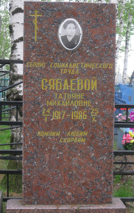 Указом Президиума Верховного Совета СССР от 12 марта 1958 года за самоотверженный труд, долголетнюю безупречную работу на ферме и высокие надои молока Сябаева Татьяна Михайловна удостоена звания Герой Социалистического труда с вручением ордена Ленина и золотой медали «Серп и Молот» (№8526).