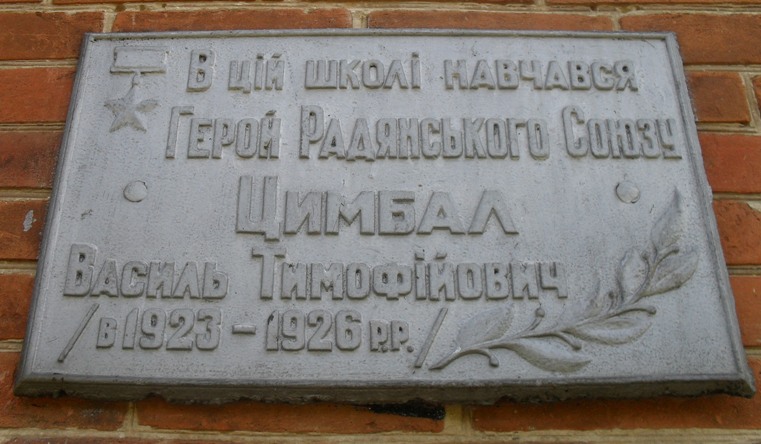 Командир отделения 386-го отдельного батальона морской пехоты (Черноморский флот) главный старшина Василий Цымбал в ночь на 1 ноября 1943 года в составе морского десанта высадился в районе поселка Эльтиген (ныне поселок Героевское в черте города Керчь, Крым). Вступив в единоборство с вражескими танками, гранатами подорвал один из них. В этом бою он погиб.