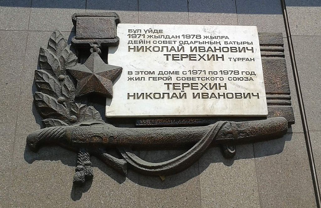 В городе Алматы на здании дома, в котором жил Н.И.Терёхин, установлена мемориальная доска.