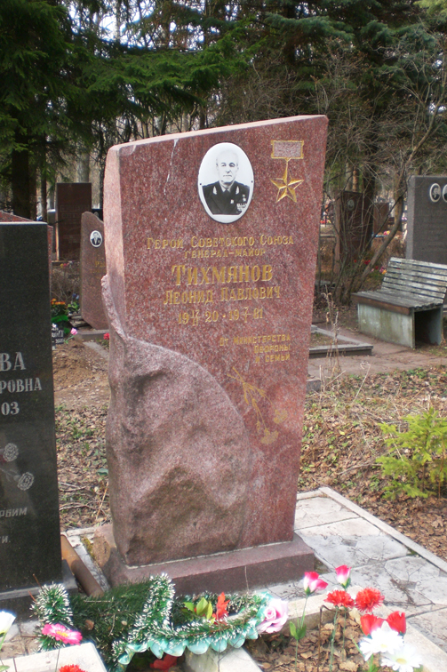 Генерал-майор Л.П.Тихмянов скоропостижно скончался на рабочем месте 7 января 1981 года. Похоронен на Смоленском кладбище (кладбище №1) в Туле.