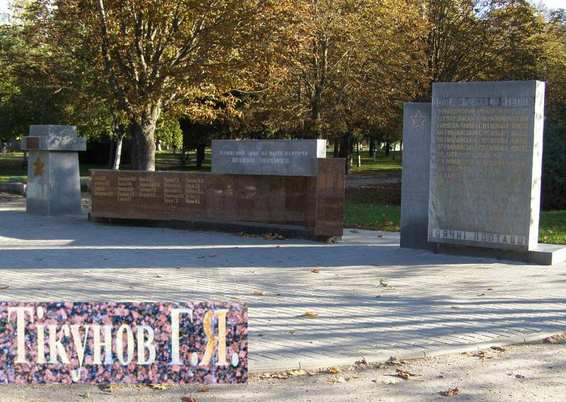 Имя Героя — на мемориале, воздвигнутом в посёлке городского типа Машевка Полтавской области.