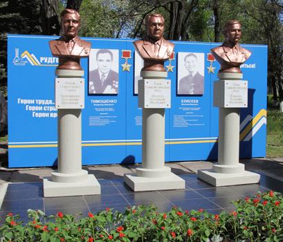 Бюст В.И.Тимошенко (слева) установлен на территории завода «Рудгормаш» в городе Воронеж. Фото с сайта http://www.rudgormash.ru/