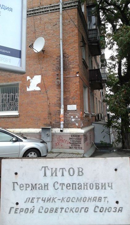 В посёлке Красный Кут Саратовской области, в районе которого совершил посадку космонавт №2, открыта мемориальная доска, посвящённая этому событию. Также установлены бюсты в города Чернигов, Барнаул.