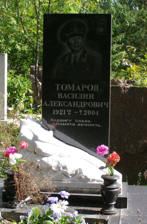Командир звена 872-го штурмового авиаполка (281-я штурмовая авиадивизия, 13-я воздушная армия, Ленинградский фронт) лейтенант Томаров В.А. к концу сентября 1944 года совершил 104 боевых вылета на штурмовку скоплений войск противника.