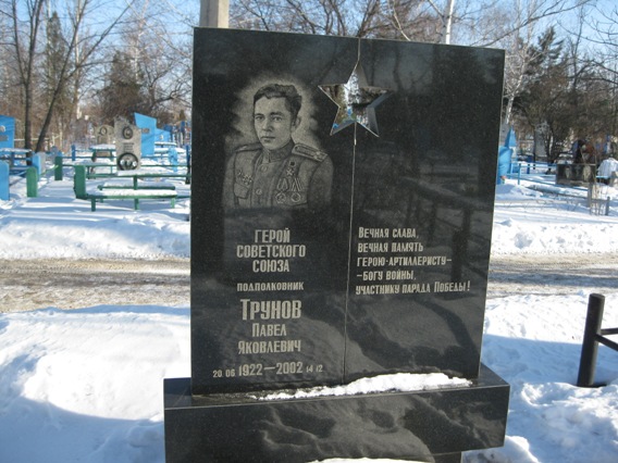 Позже, в одном из жестоких боев уже на территории Восточной Пруссии, старший лейтенант Павел Трунов снова проявил героизм. Батарея отразила контратаку 12 танков, причем командир подбил три танка. В марте 1945 года отважный артиллерист был удостоен высокого звания Героя Советского Союза. Когда после разгрома гитлеровской Германии майор П.Я. Трунов возвратился в родной Донбасс, на его груди рядом с Золотой Звездой Героя были ордена Ленина, Отечественной войны, Красной Звезды и многие другие награды.
