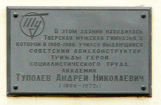 Бронзовый бюст Героя установлен в городе Кимры Тверской области. Именем А.Н.Туполева названа набережная в Москве, улицы в Санкт-Петербурге, Киеве, Ульяновске, Кимрах и Жуковском. На зданиях в Москве и Омске, в которых работал А.Н.Туполев, и Твери, на здании где он учился, установлены мемориальные доски.