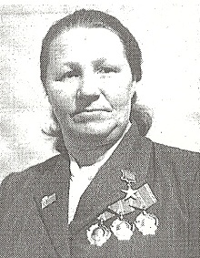 В 1950 году за повторный высокий урожай картофеля была удостоена третьего ордена Ленина.