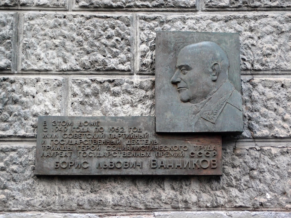 Ванников Борис Львович – бывший нарком вооружения, народный комиссар боеприпасов СССР; начальник Первого Главного управления при Совете Министров СССР, член Специального комитета №1 при Совете Министров СССР; первый заместитель Министра среднего машиностроения СССР, генерал-полковник инженерно-артиллерийской службы, город Москва.