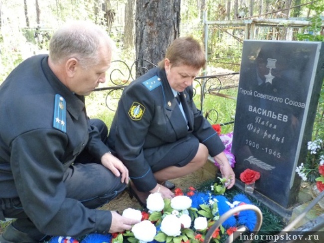 При подходе к населенному пункту Егуайла 15 августа 1945 года пехота противника пыталась задержать наше наступление. Гвардии полковник П.Ф. Васильев, развернув на прямую наводку противотанковый дивизион, сам выехал на самоходном орудии вперед, оттуда корректировал огонь артиллерии, затем лично поднял пехоту в атаку. В гранатно-штыковом бою пехота противника полностью была уничтожена. В этом бою коммунист П.Ф. Васильев лично гранатами уничтожил один пулемет с расчетом, 8 японских солдат, одного унтер-офицера и сам погиб смертью героя... Похоронен на городском кладбище в Чите.