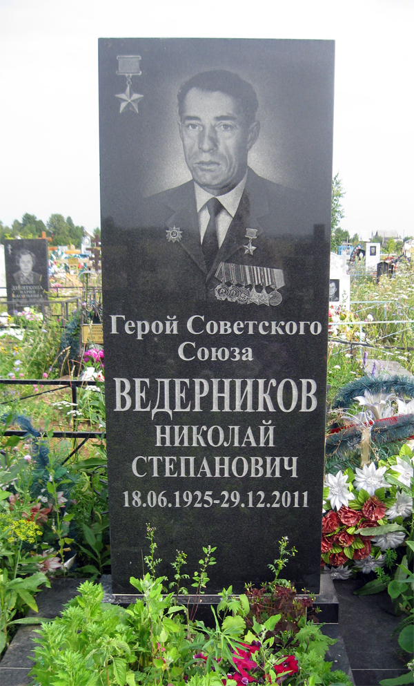 На родине Н.С.Ведерникова в селе Верхние Татышлы Татышлинского района Башкирии его именем названа улица, в 2002 году установлен бюст героя.