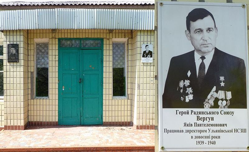В селе Ульяновка Царичанского района Днепропетровской области на здании школы, в которой до войны работал директором Я.П.Вергун, установлена мемориальная доска.