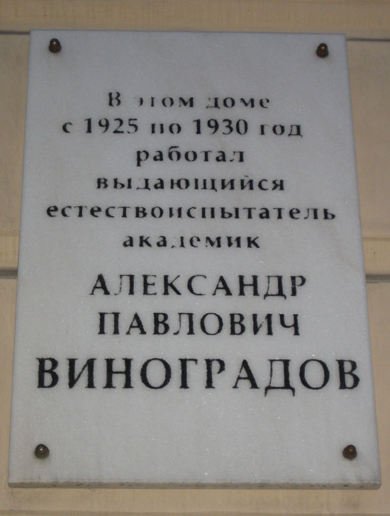 Виноградов Александр Павлович - организатор и директор Института геохимии и аналитической химии (ГЕОХИ) Академии наук СССР; основатель и руководитель первой отечественной кафедры геохимии Московского государственного университета (МГУ) имени М.В. Ломоносова, вице-президент, академик Академии наук СССР.