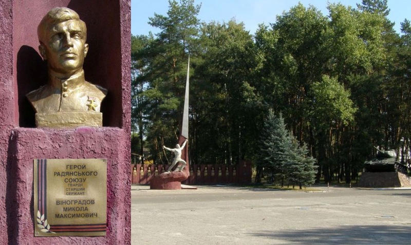 Командир противотанкового орудия 241-го гвардейского стрелкового полка (75-я гвардейская стрелковая дивизия, 60-я армия, Центральный фронт) гвардии старший сержант Н.К.Виноградов особо отличился при форсировании реки Днепр севернее Киева в районе села Глебовка Вышгородского района Киевской области Украины.