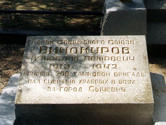 Данные о месте рождения исправлены на основании документов ЦАМО на сайте «Мемориал» и публикаций в Интернете. По документам о потерях на том же сайте «Мемориал» подполковник Винокуров числится пропавшим без вести 30.11.1942. Там же есть журнал эвакогоспиталя № 1851, где он записан в списке за март-апрель 1943 года с пометкой «доставлен труп». По данным РВК города Сычевка он похоронен сразу на двух кладбищах (№1 и №2)