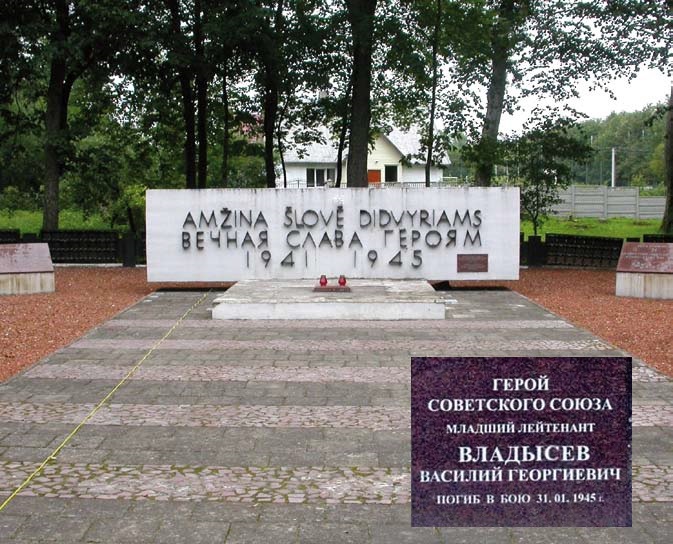 … Отбиты четыре атаки фашистов. Связи со штабом нет. Патроны на исходе. Командиры рот и взводов вышли из строя, и тогда комсорг десанта младший лейтенант Василий Владысев поднял всех оставшихся бойцов, первым бросился в рукопашную схватку с врагом. Тяжело раненный в бою Владысев не ушел с поля боя, продолжал драться. В ночь с 29 на 30 января оставшиеся в живых десантники вернулись через залив в Кайряй, неся на плечах тяжелораненого офицера. Через два дня от большой потери крови комсорг десантной группы младший лейтенант Василий Владысев умер. Похоронен на воинском кладбище в Гаргждай…