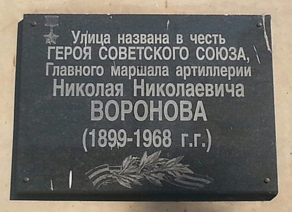 С марта 1943 года по март 1950 года Н.Н. Воронов - командующий артиллерией Вооружённых Сил СССР. За выдающиеся заслуги перед Родиной Воронову Н.Н. первому в Советском Союзе были присвоены воинские звания "Маршал артиллерии" (1943) и "Главный маршал артиллерии" (1944).