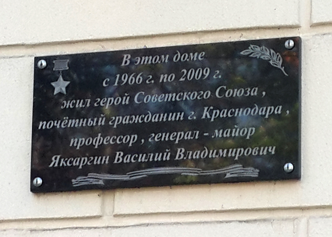 В Краснодаре на доме, в котором он жил, установлена мемориальная доска.