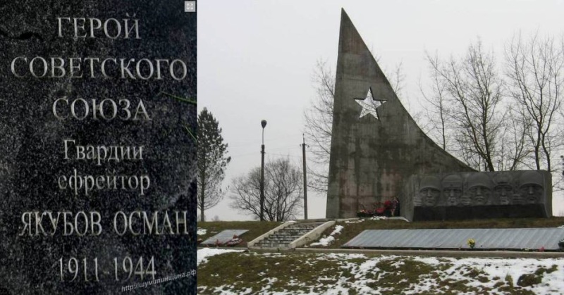 Якубов (Якибов) Осман - пулеметчик 1-го стрелкового батальона 201-го гвардейского стрелкового полка (67-я гвардейская стрелковая дивизия, 6-я гвардейская армия, 1-й Прибалтийский фронт), гвардии ефрейтор.