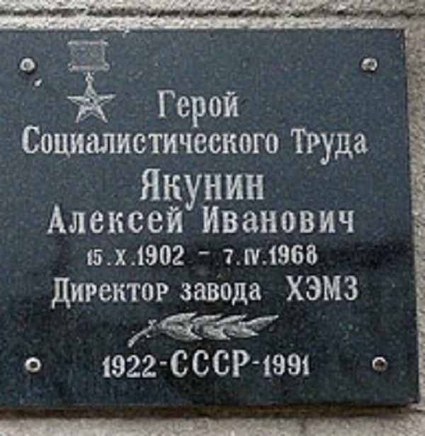 Якунин Алексей Иванович – директор Харьковского электромеханического завода Министерства электротехнической промышленности СССР (Украинская ССР).