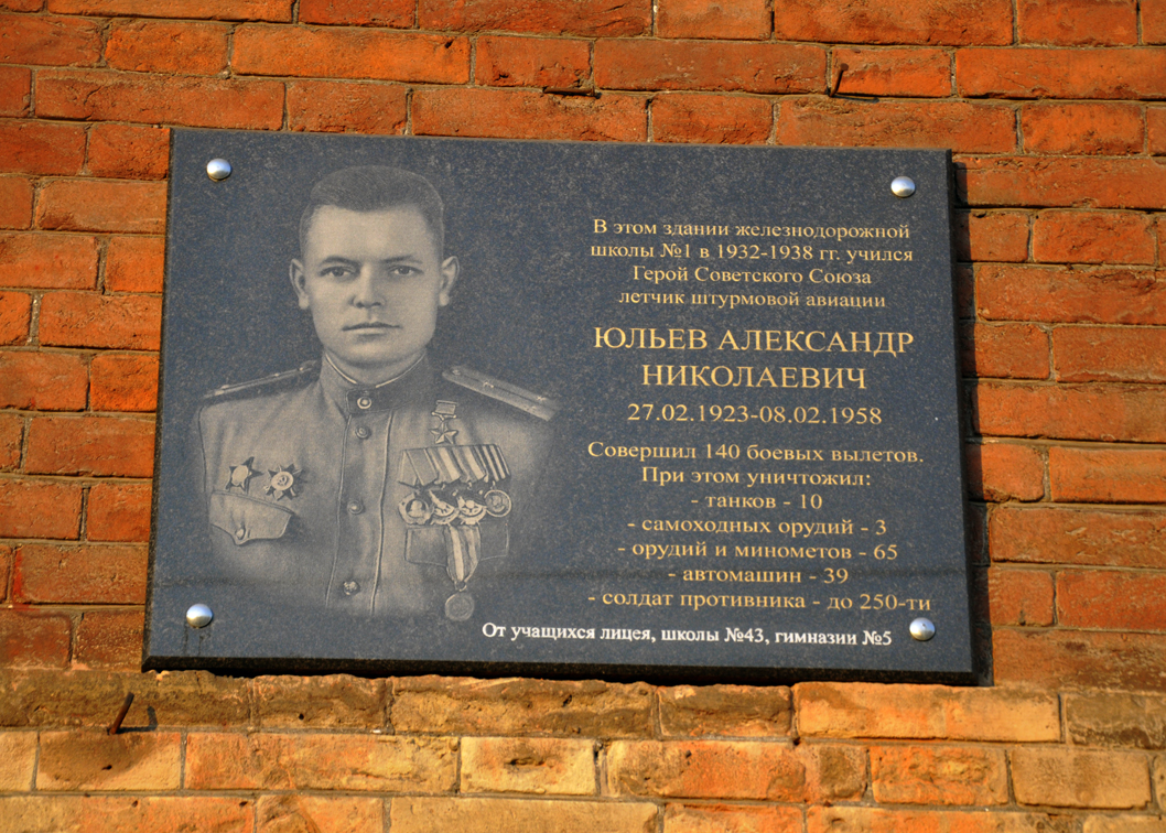 Юльев Александр Николаевич – старший лётчик 43-го гвардейского штурмового авиационного полка (230-я штурмовая авиационная дивизия, 4-я воздушная армия, 2-й Белорусский фронт), гвардии младший лейтенант.