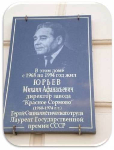 Юрьев Михаил Афанасьевич – директор завода «Красное Сормово» имени А.А. Жданова Министерства судостроительной промышленности СССР, город Горький.