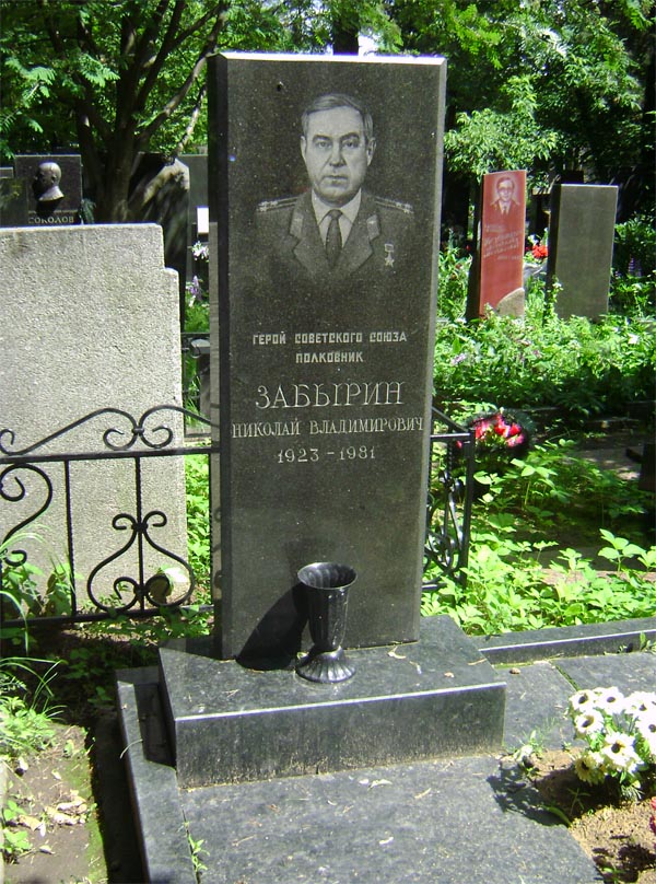Забырин Николай Владимирович - командир звена 106-го гвардейского истребительного Висленского орденов Кутузова и Александра Невского авиационного полка (11-я гвардейская истребительная авиационная Днепропетровская Краснознаменная ордена Богдана Хмельницкого дивизия, 2-й истребительный авиационный корпус, 2-я воздушная армия, 1-й Украинский фронт), гвардии лейтенант.